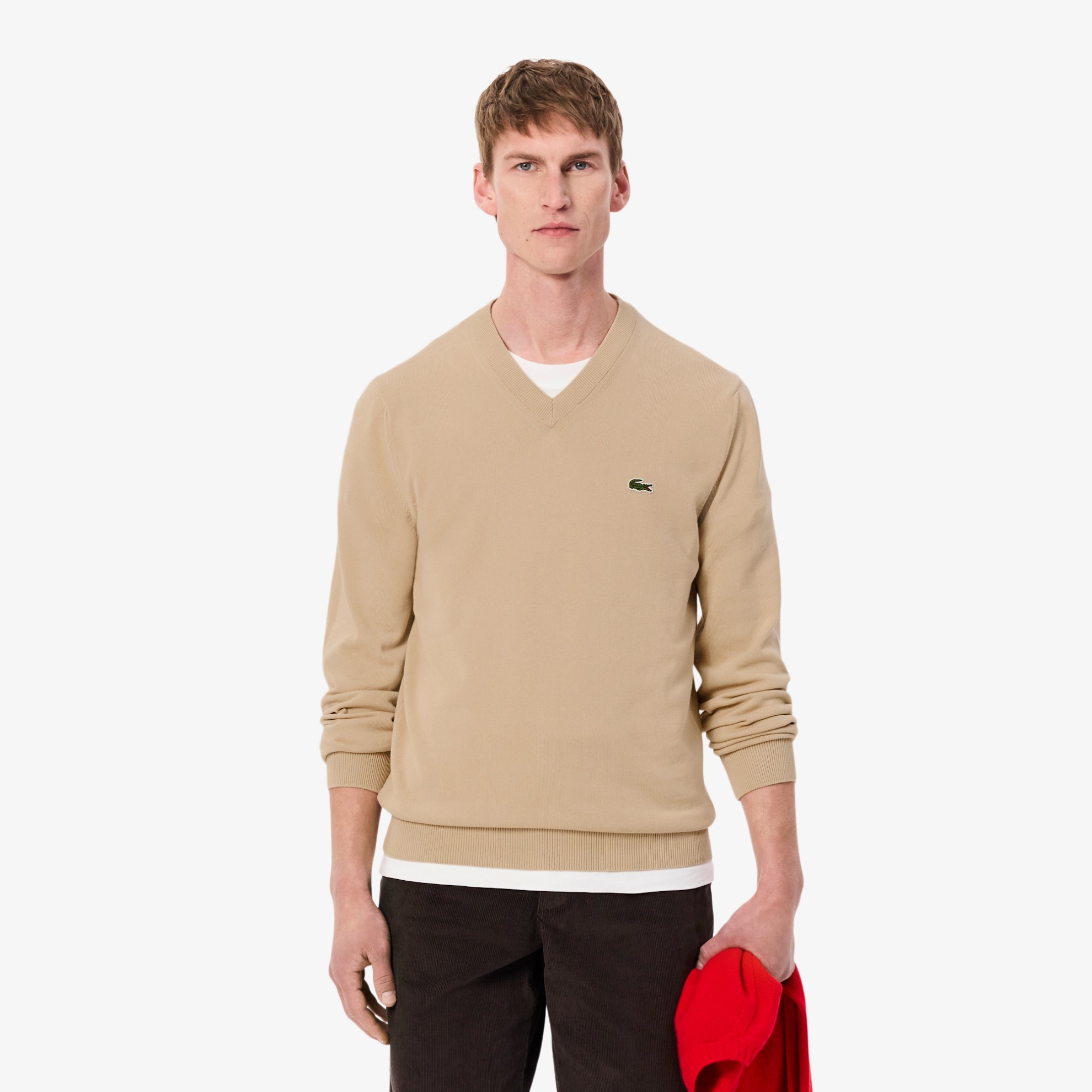 Κομψό πουλόβερ με λαιμόκοψη V από 100% οργανικό βαμβάκι. Προσεγμένες ribbed λεπτομέρειες στο εσωτερικό του γιακά και στο δεξί μανίκι. Οικολογικά υπεύθυνο ρούχο με κομψές γραμμές. Διαθέσιμο σε διάφορα σύγχρονα χρώματα, ταιριάζει υπέροχα με παντελόνι chinos και sneakers από τη συλλογή.