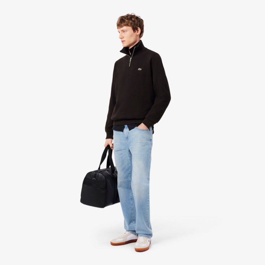Διαθέσιμο σε διάφορα χρώματα, αυτό το φούτερ με φερμουάρ και όρθιο γιακά είναι το νέο must-have για το αστικό σας στυλ. Το μαλακό, ραβδωτό βαμβακερό ύφασμα interlock ολοκληρώνεται με έναν μικρό πράσινο κροκόδειλο κεντημένο στο στήθος. Φορέστε αυτό το κομψό αλλά casual basic φούτερ με όλα τα αγαπημένα σας t-shirts και polo shirts.