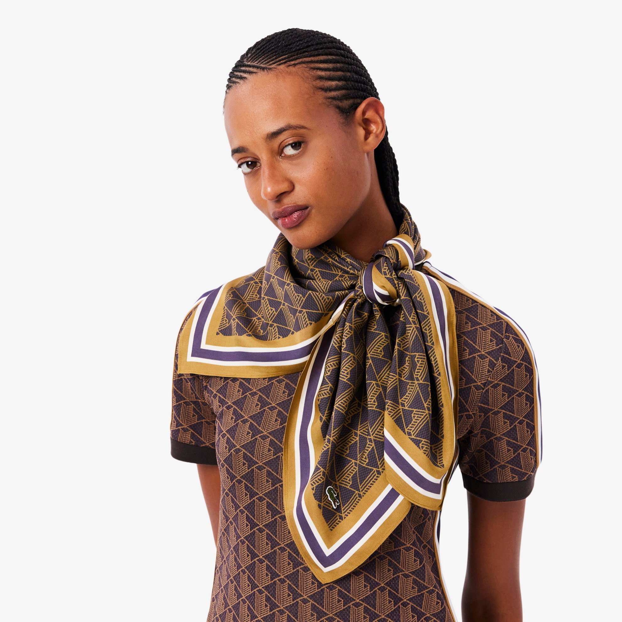 Απολαύστε την κομψότητα με άνεση με αυτό το μαντήλι Lacoste. Κατασκευασμένο από μονόχρωμο ύφασμα, είναι διακοσμημένο με ένα μοτίβο Monogram από τα αρχεία του brand. Ένα κεντημένο πράσινο κροκόδειλο υπογράφει αυτό το μοντέλο, για ένα casual chic look.