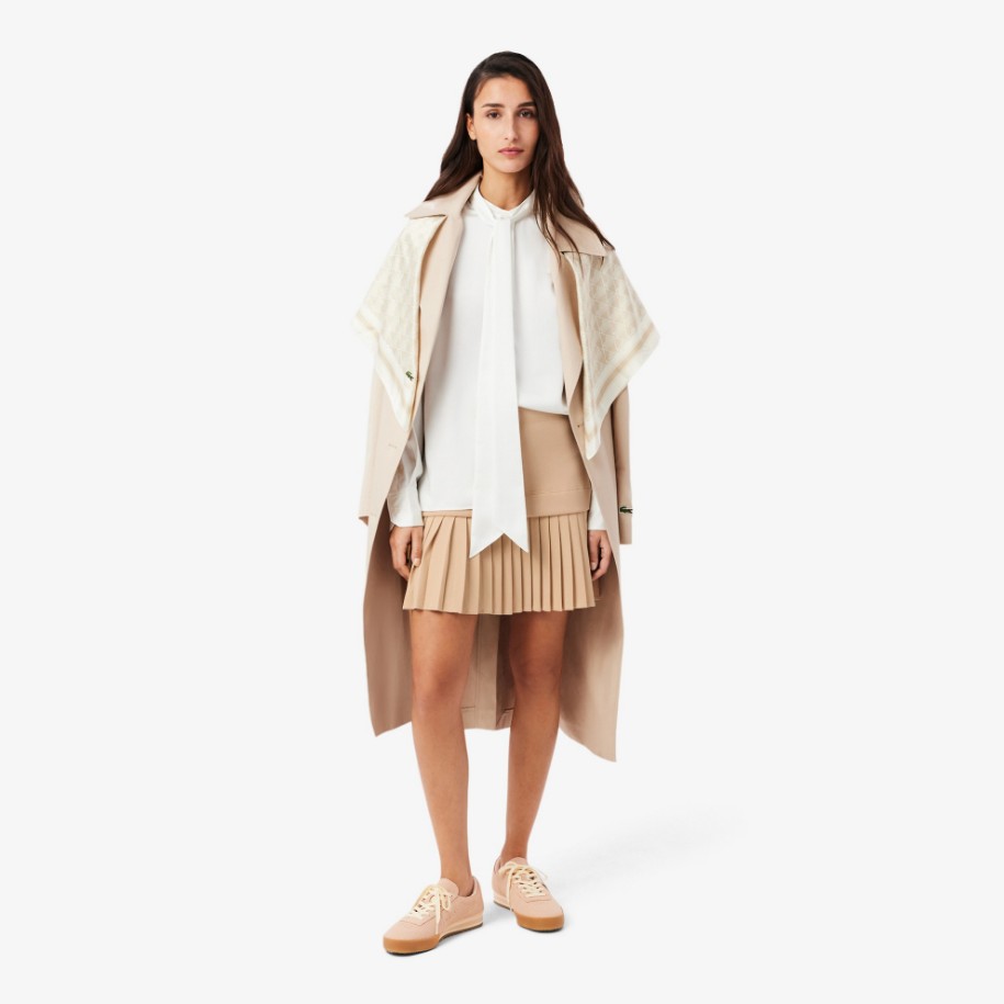Φτιαγμένη από ύφασμα double face και πικέ, αυτή η κοντή φούστα αντανακλά την φιλοσοφία της Lacoste για αθλητική κομψότητα. Διαθέτει λεπτές πτυχώσεις που προσδίδουν κίνηση, ενώ ολοκληρώνεται με ένα διακριτικό κροκόδειλο στην ίδια απόχρωση. Το ιδανικό κομμάτι για ένα κομψό, δυναμικό στυλ.