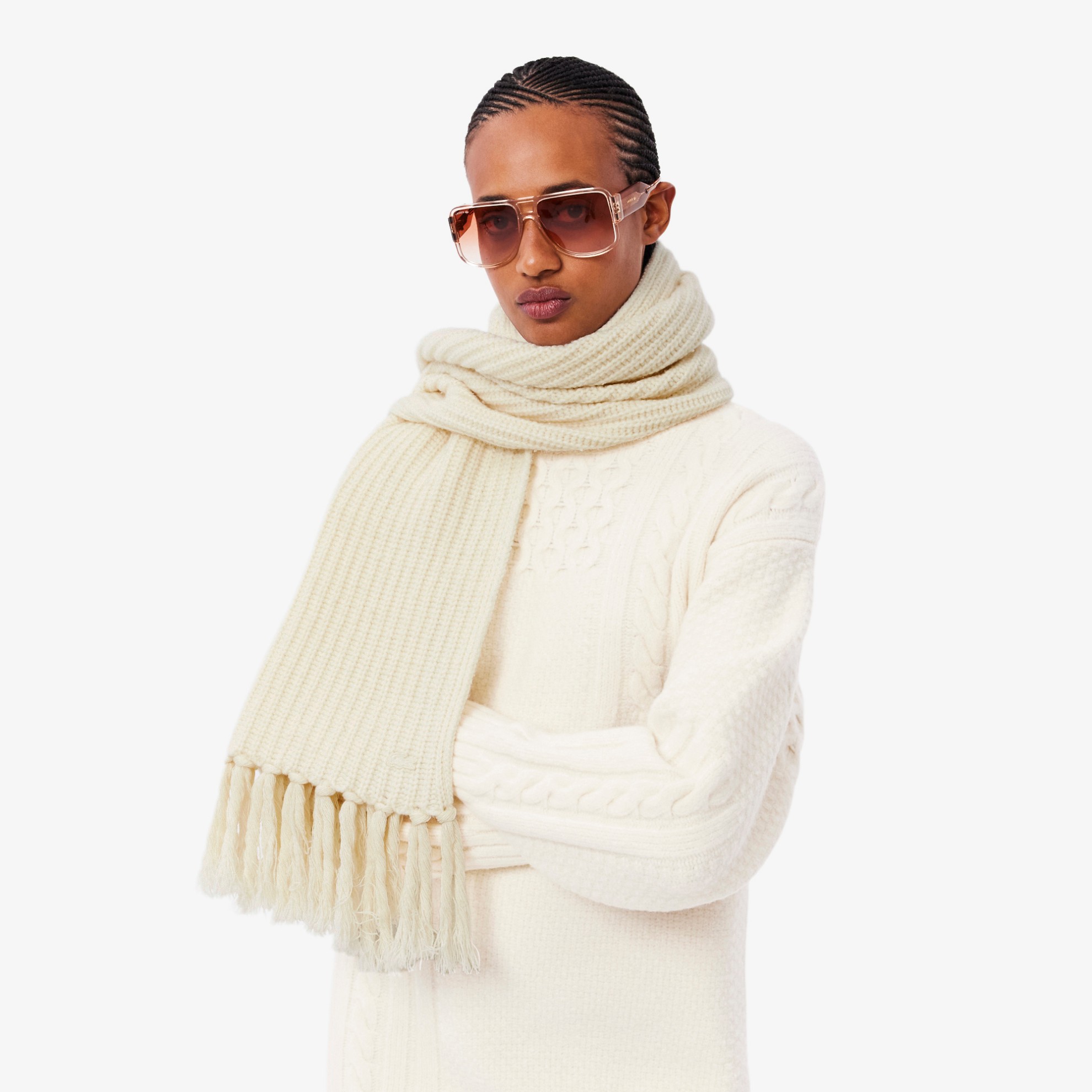 Αυτό το κασκόλ είναι το αποτέλεσμα 90 χρόνων εμπειρίας της Lacoste στον τομέα των πλεκτών. Ένα θηλυκό κομμάτι από ζεστό, χνουδωτό μαλλί, με λεπτή υφή και φινίρισμα με κρόσσια. Ένα κομψό, διαχρονικό κομμάτι, με το χαρακτηριστικό κεντημένο κροκόδειλο.