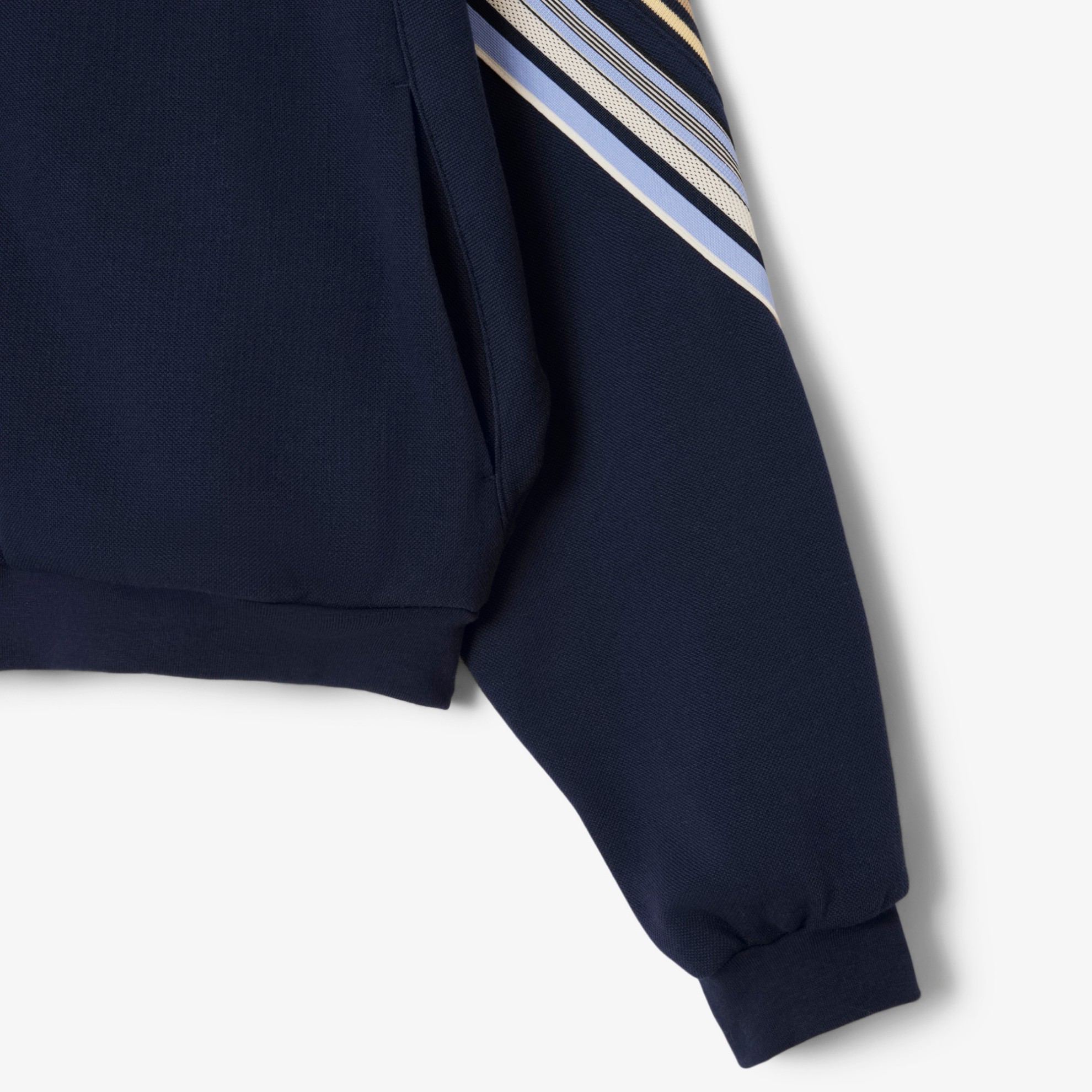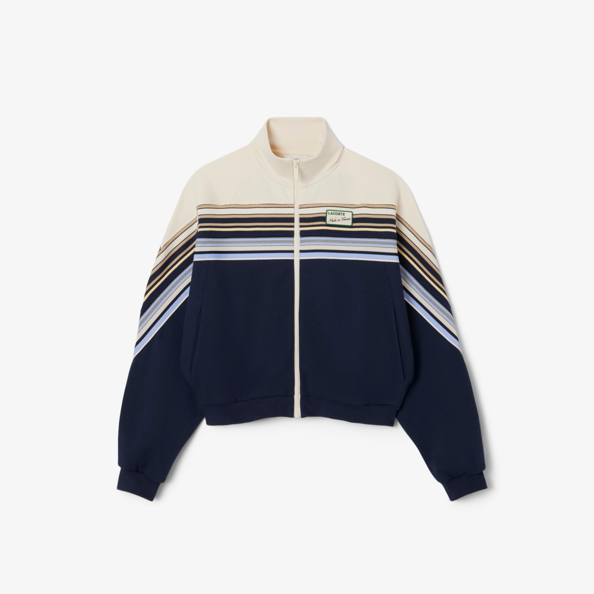 Αυτό το φούτερ με φερμουάρ είναι το αποτέλεσμα 90 χρόνων κομψότητας και εμπειρίας της Lacoste στον τομέα των πλεκτών. Κατασκευασμένο στη Γαλλία από άνετο φλις ύφασμα, με μανίκια τύπου «batwing» και φαρδιές ρίγες σε αντίθεση, πλεκτές στο σχέδιο με βαμμένα νήματα ή ραμμένες για ένα εκλεπτυσμένο εφέ υφής. Ένα must-have κομμάτι, με φινίρισμα από εμβλήματα της μάρκας και το χαρακτηριστικό κροκόδειλο.