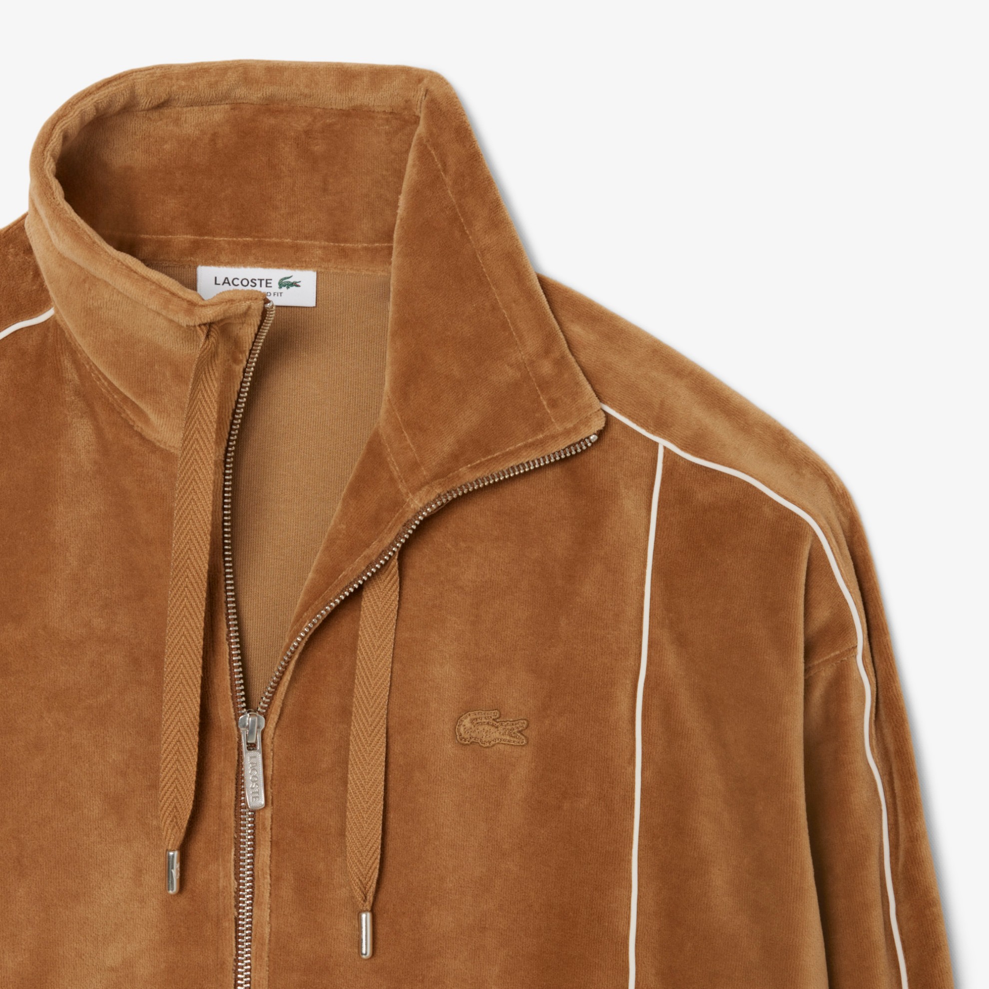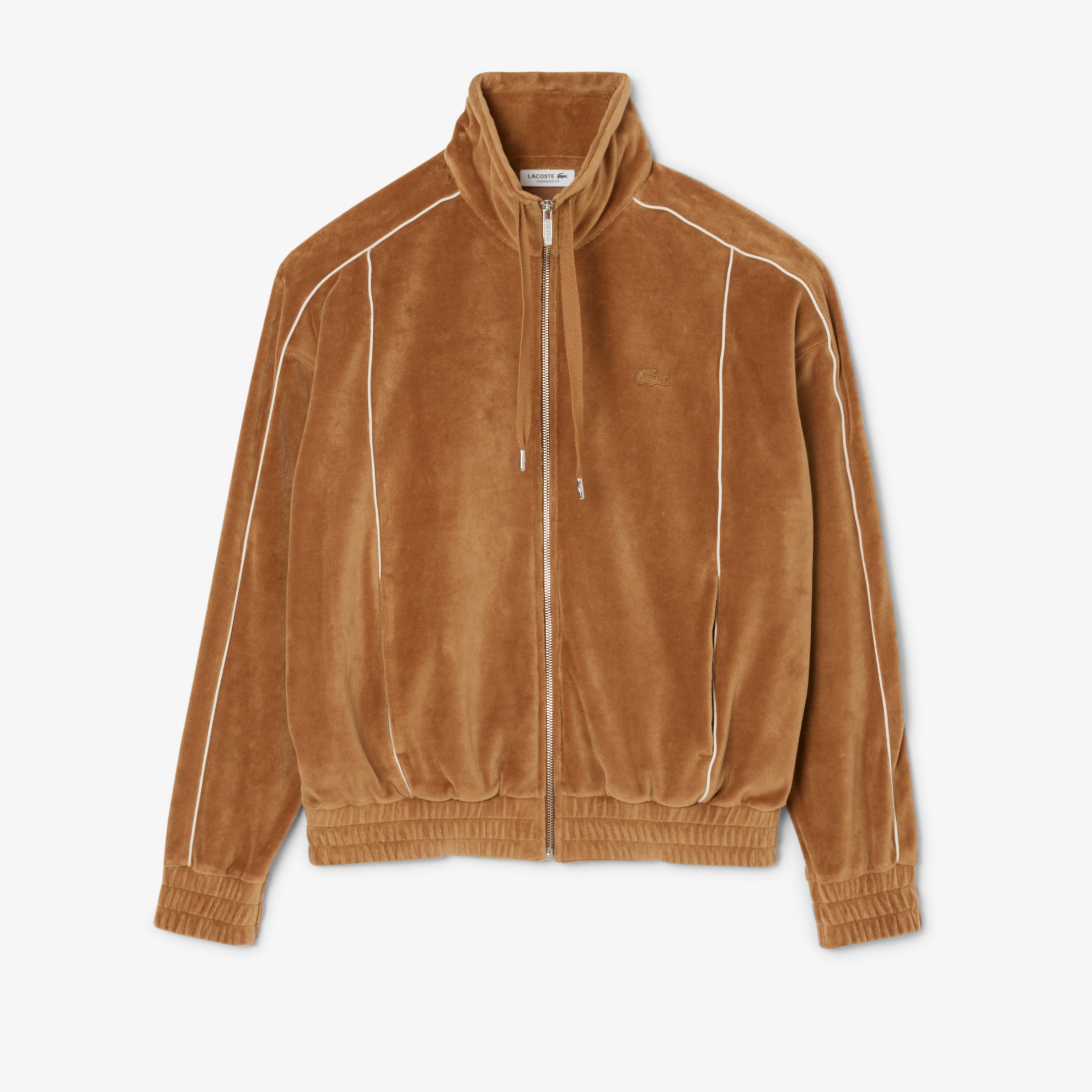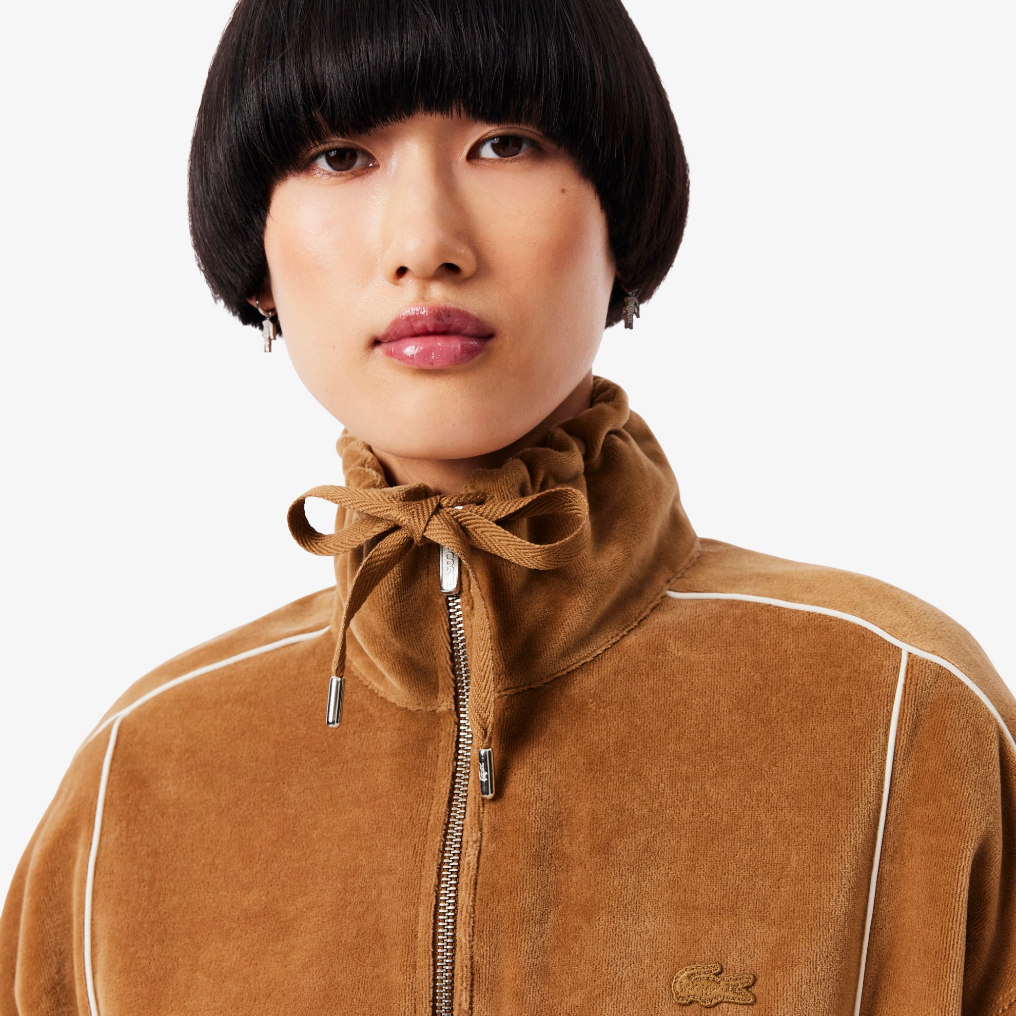 Αυτό το φούτερ με φερμουάρ είναι το αποτέλεσμα 90 χρόνων εμπειρίας της Lacoste στον χώρο της μόδας και του αθλητισμού. Ένα τολμηρά θηλυκό κομμάτι από απαλό, ζωντανό βελούδο, με φαρδιά γραμμή και εμβληματικές λεπτομέρειες σε αντίθεση. Ένα must-have κομμάτι γεμάτο πρακτικές και αισθητικές πινελιές, όπως η ψηλή, ρυθμιζόμενη λαιμόκοψη.