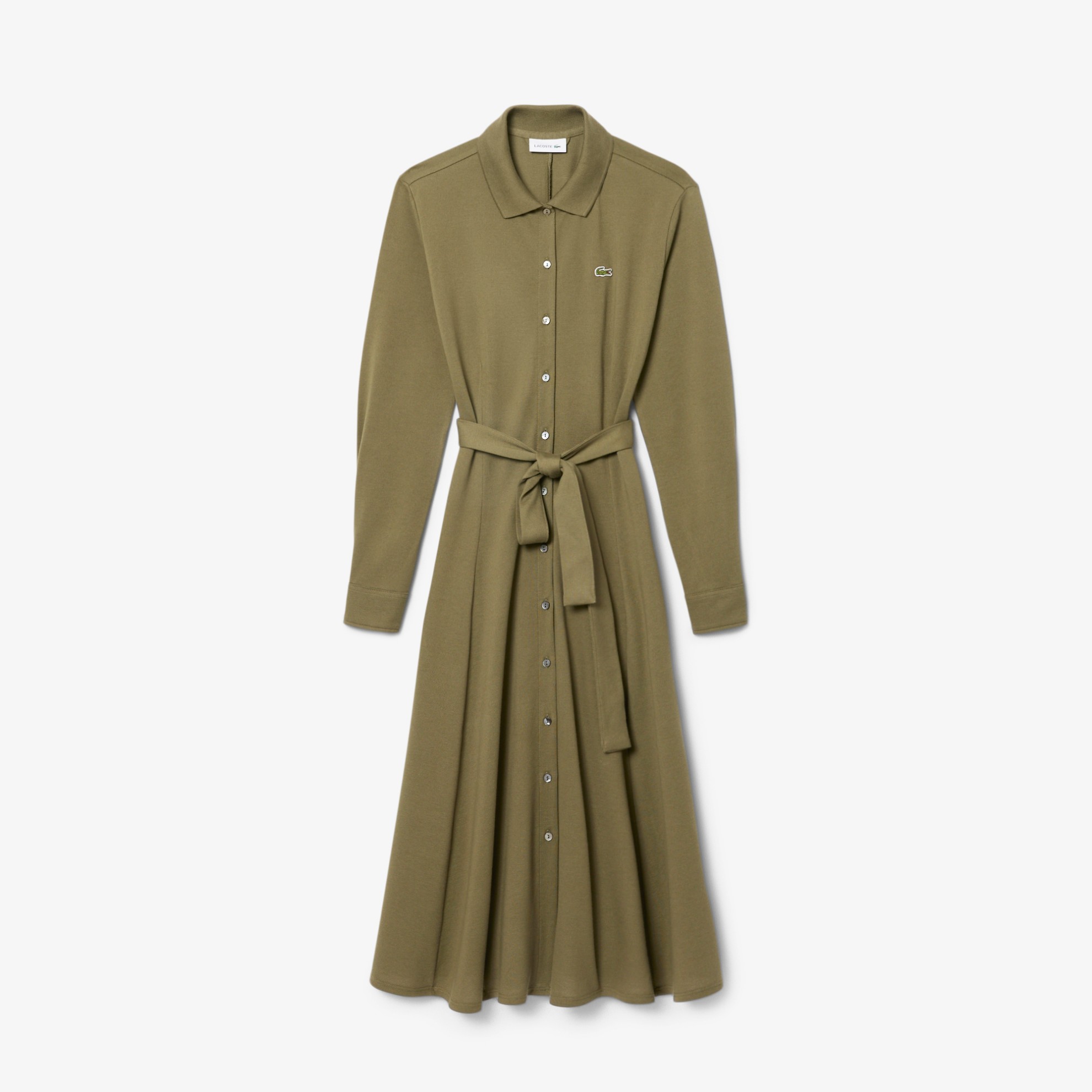 Ένα μακρύ φόρεμα γεμάτο με χαρακτηριστικές λεπτομέρειες από τη Lacoste, ειδικούς στη γαλλική κομψότητα από το 1933. Κατασκευασμένο από μια απαλή, ρευστή εκδοχή του εμβληματικού πλεκτού Petit Piqué, με θηλυκή γραμμή και λεπτομέρειες υψηλής ποιότητας, όπως το χαρακτηριστικό γιακά polo και μια ζώνη που τονίζει τη μέση. Για απόλυτη κομψότητα.