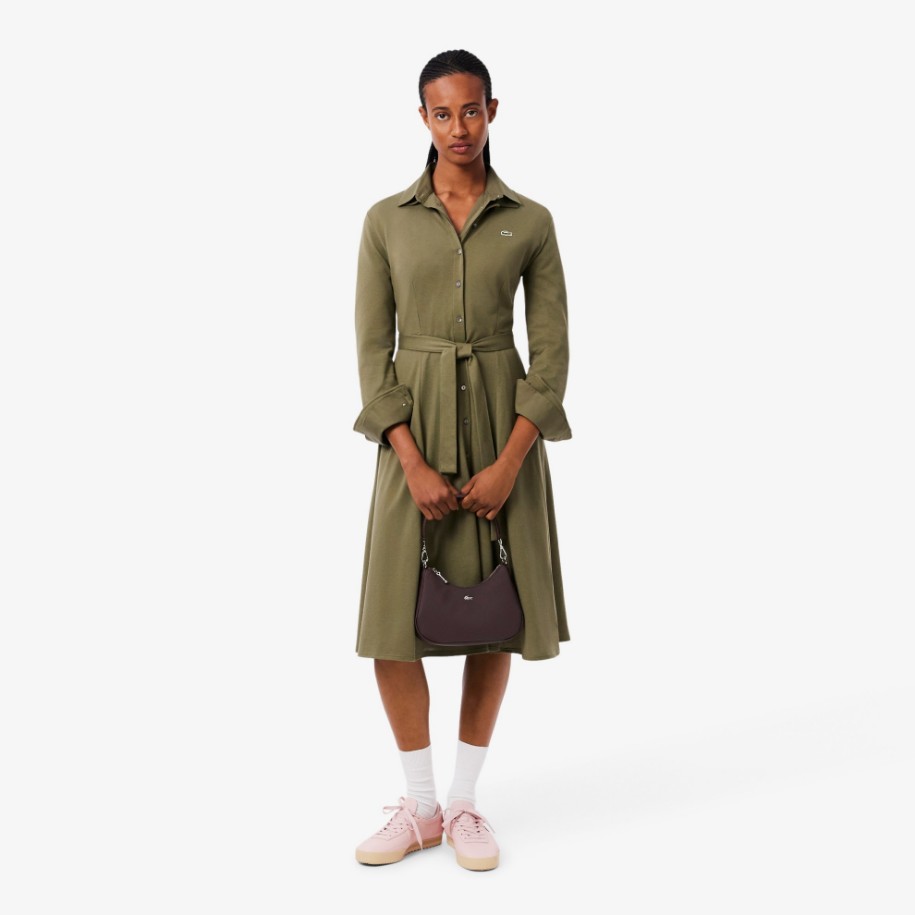 • Γυναικείο Polo Collar Belted Petit Piqué Φόρεμα