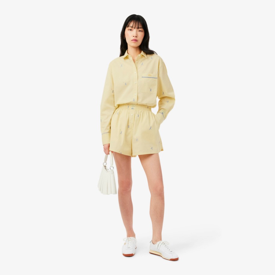 Η μόδα συναντά την αθλητική ένδυση σε αυτό το θηλυκό σορτς από βαμβακερή ποπλίνα. Ένα ρούχο με χαλαρή, άνετη γραμμή και ελαστική μέση, για απόλυτη ελευθερία κινήσεων. Διαθέτει μοτίβο ζακάρ εμπνευσμένο από την ιστορία της Lacoste στο τένις, καθώς και λεπτομέρειες υψηλής ποιότητας για μια χαλαρή, κομψή αίσθηση.