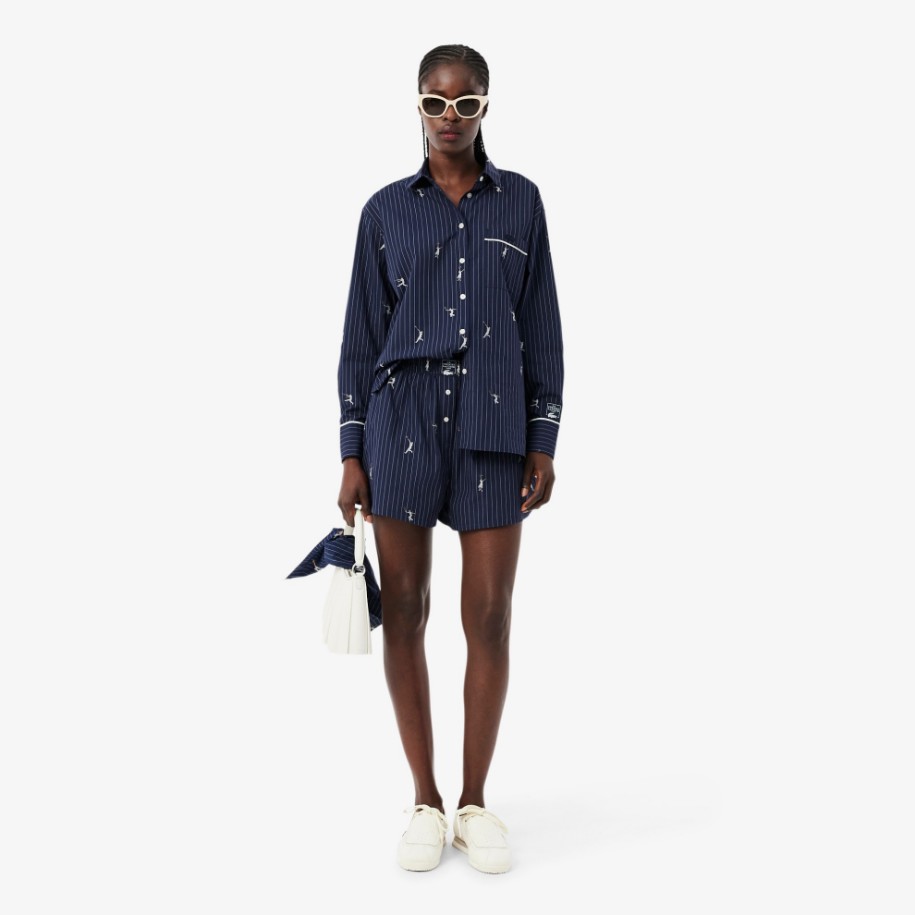 Η μόδα συναντά την αθλητική ένδυση σε αυτό το θηλυκό σορτς από βαμβακερή ποπλίνα. Ένα ρούχο με χαλαρή, άνετη γραμμή και ελαστική μέση, για απόλυτη ελευθερία κινήσεων. Διαθέτει μοτίβο ζακάρ εμπνευσμένο από την ιστορία της Lacoste στο τένις, καθώς και λεπτομέρειες υψηλής ποιότητας για μια χαλαρή, κομψή αίσθηση.