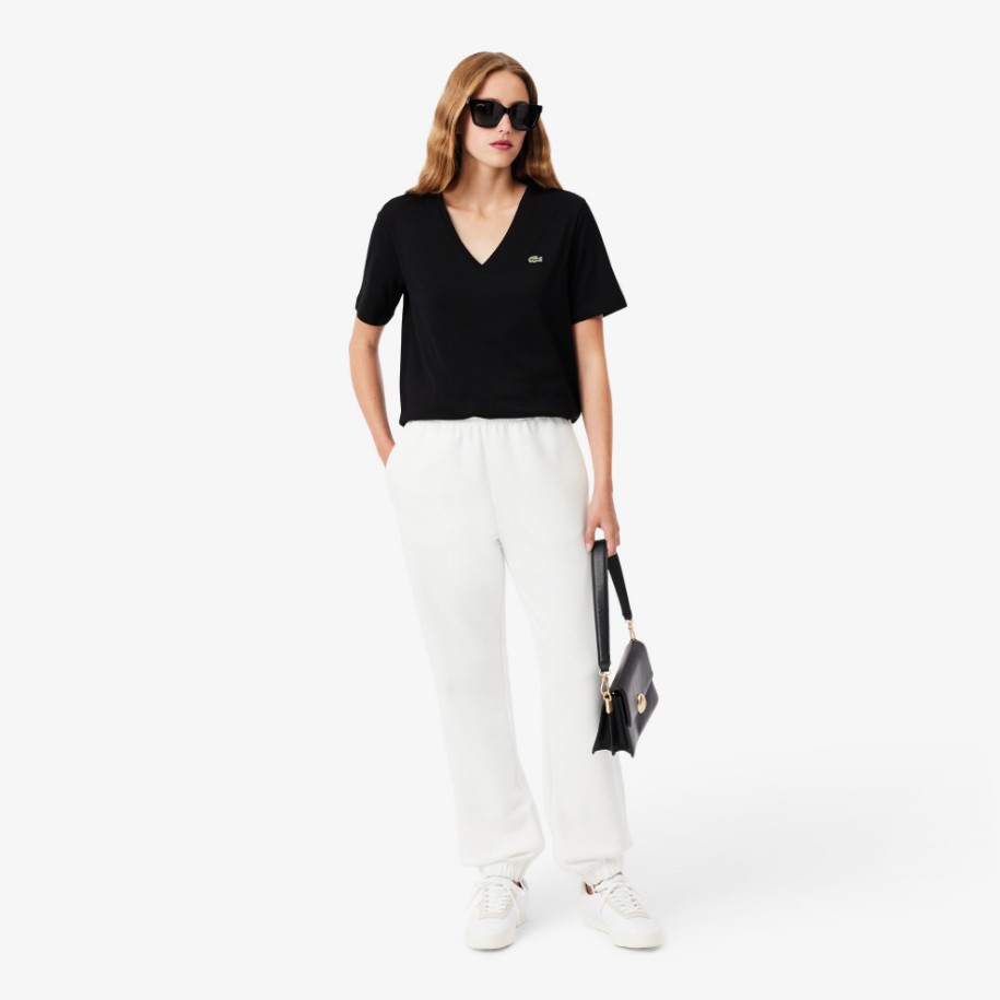 Με μοντέρνο σχεδιασμό και πεσμένους ώμους από άνετο βαμβακερό jersey: αυτό το μπλουζάκι Lacoste με V-λαιμό είναι κλασικό για κάποιο λόγο. Ολοκληρώνεται με τον χαρακτηριστικό μας κεντημένο κροκόδειλο.