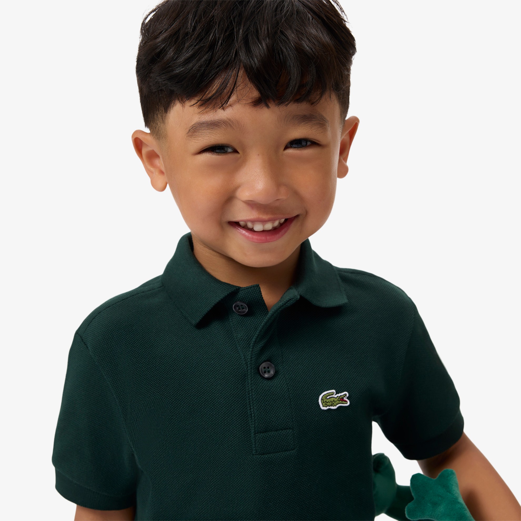 Η Lacoste, που εφηύρε τη polo μπλούζα το 1933, παρουσιάζει αυτή την έκδοση ειδικά για παιδιά. Κατασκευασμένο από το εμβληματικό, απαλό και κομψό ύφασμα piqué για απόλυτη ελευθερία κινήσεων. Ένας διαχρονικός συνδυασμός μόδας και αθλητικής ένδυσης, με λεπτομέρειες από ριμπ και το χαρακτηριστικό λογότυπο με τον κροκόδειλο.
