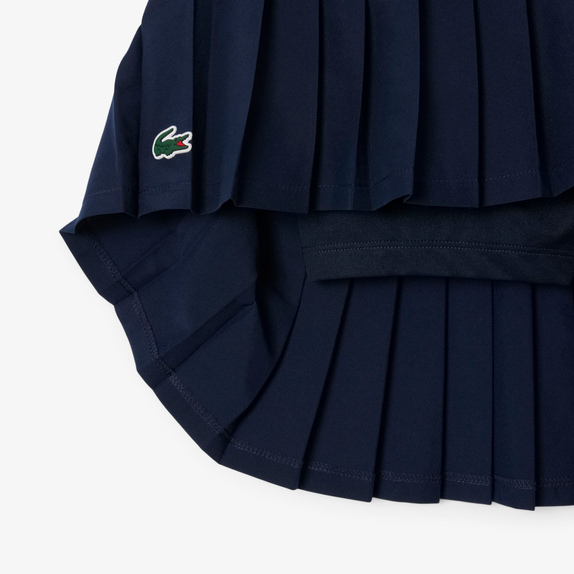 Η κλασική φούστα τένις Lacoste, ανανεωμένη για τη σύγχρονη κοπέλα. Διαθέτει διακριτικές πτυχώσεις και ενσωματωμένο ελαστικό σορτς, συνδυάζοντας στυλ και ελευθερία κινήσεων. Ιδανική για το γήπεδο και όχι μόνο.