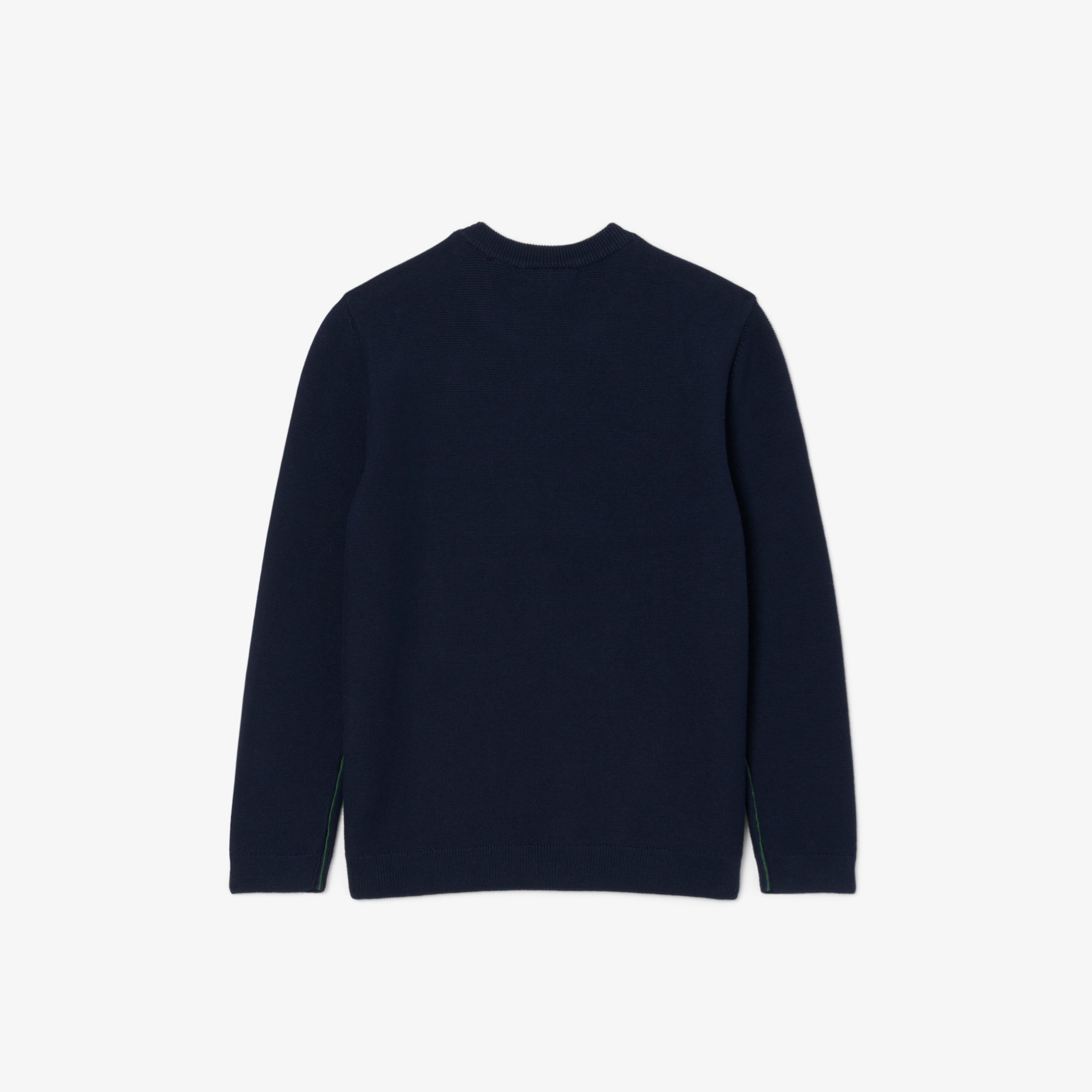 Παιδικό Πουλόβερ από μάλλινο και βαμβακερό τζέρσεϊ της Lacoste, ειδικών στα πλεκτά από το 1933, σχεδιασμένο για καθημερινή άνεση και ζεστασιά. Απαραίτητο κομμάτι της παιδικής ντουλάπας, με εμβληματικές λεπτομέρειες, όπως ένα περίτεχνο κεντημένο κροκόδειλο.