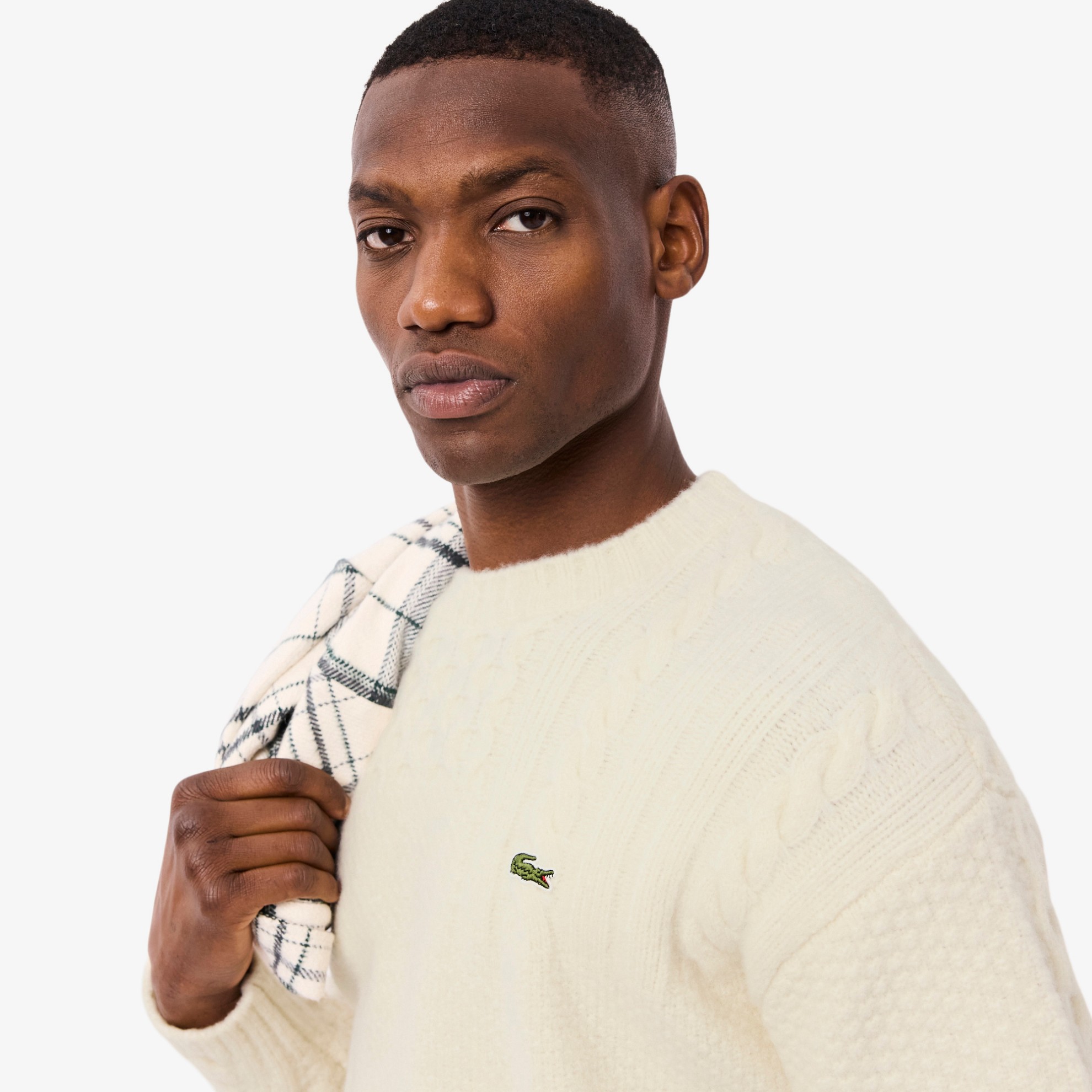 Αυτό το πουλόβερ είναι το αποτέλεσμα 90 χρόνων κομψότητας και εμπειρίας της Lacoste στον τομέα των πλεκτών. Είναι κατασκευασμένο από ζεστό, χνουδωτό μαλλί, με χαλαρή γραμμή και εκλεπτυσμένο σχέδιο σε στυλ patchwork, που δημιουργήθηκε χρησιμοποιώντας μια ποικιλία πλεκτών βελονιών. Ένα κομψό κομμάτι, με λεπτομέρειες υψηλής ποιότητας και κεντημένο κροκόδειλο.